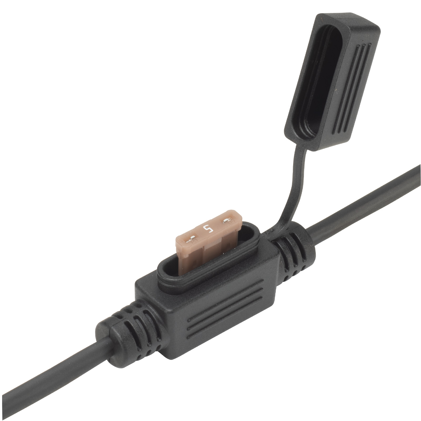 Strömkabel med säkringshållare och flatstiftsanslutningar till XPLORE vid montering i ICE Shuttle. Längd 45cm.